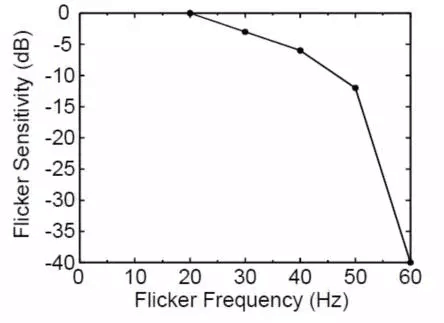 人眼是非常復雜的系統,個體差異非常大,對于絕大多數人來說,可以察覺到80Hz以下的光閃爍,此時的人眼能夠感知到明暗變化,閃爍頻率在80Hz以下的也被稱為可見頻閃(visible flicker)。可見頻閃是普通照明或顯示無法接受的。