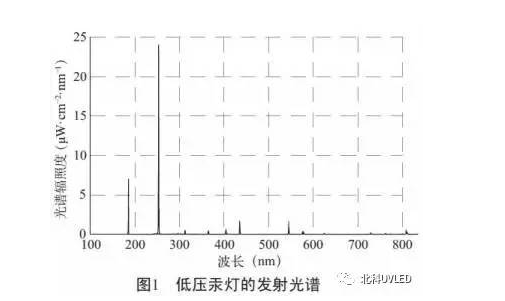 低壓汞燈即低氣壓汞蒸氣放電燈,是由汞蒸氣受高能電子碰撞電子激發而發出以254 nm和185 nm為主的的紫外共振輻射。它的輻射原理是:對不同管徑的燈,在最佳汞蒸氣壓下(外徑38 mm的T12燈為0.8 Pa,外徑7 mm的T2燈為1.6 Pa),汞蒸氣在電場中放電,汞原子的最外層電子從基態被激發到激發態,當其由激發態返回到基態時輻射出254,185 nm紫外光子。
